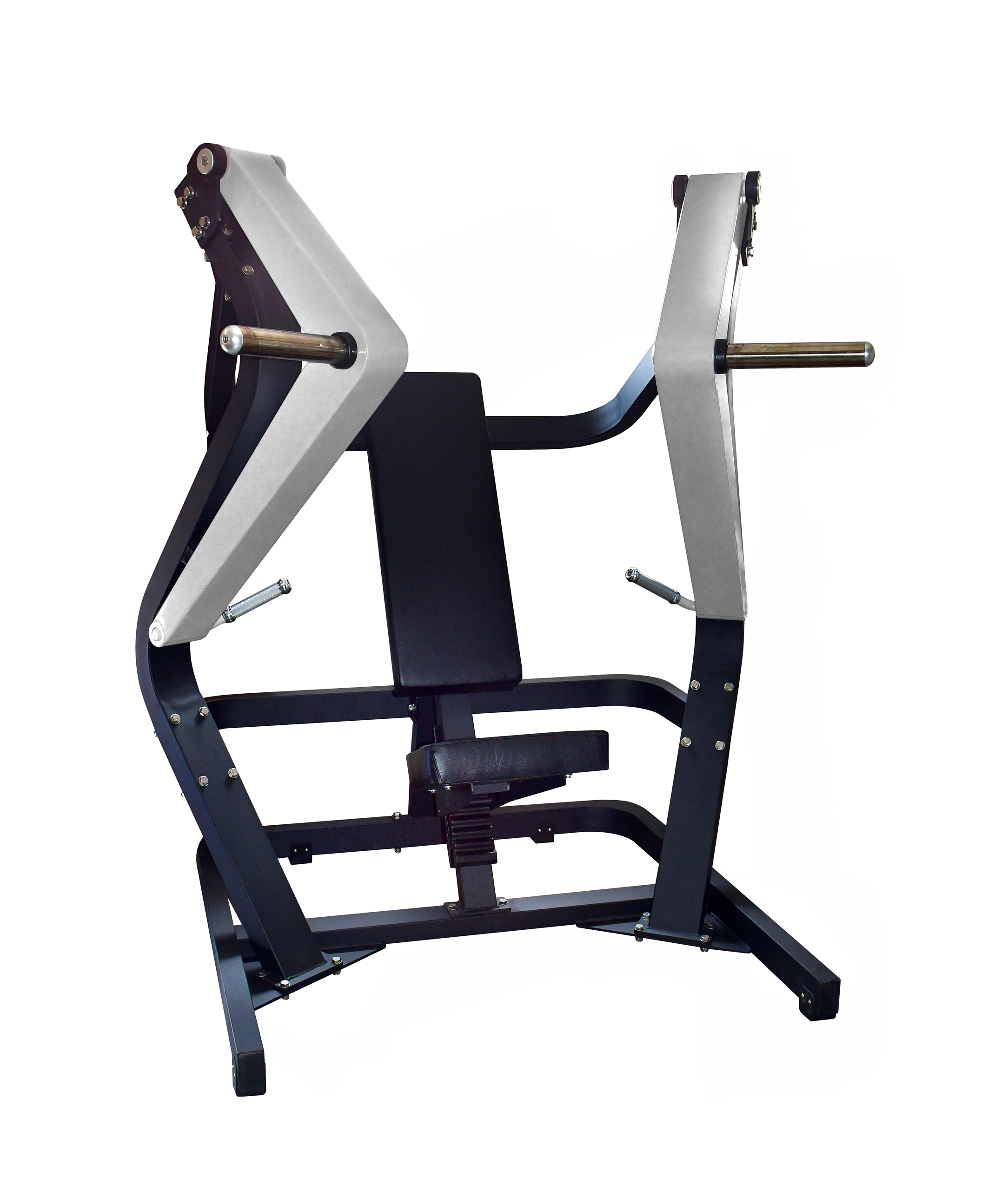 Profesionální pákový posilovací stroj s širokým záběrem k procvičení prsních svalů. Dráha pohybu ramen posilovacího stroje je od široké základny k úzkému zakončení. Během cvičení je páteř v takové poloze, aby byla zajištěna co nejvyšší efektivita a zároveň bezpečnost cviku. Jako závaží se používají olympijské kotouče s průměrem otvoru 50 mm.